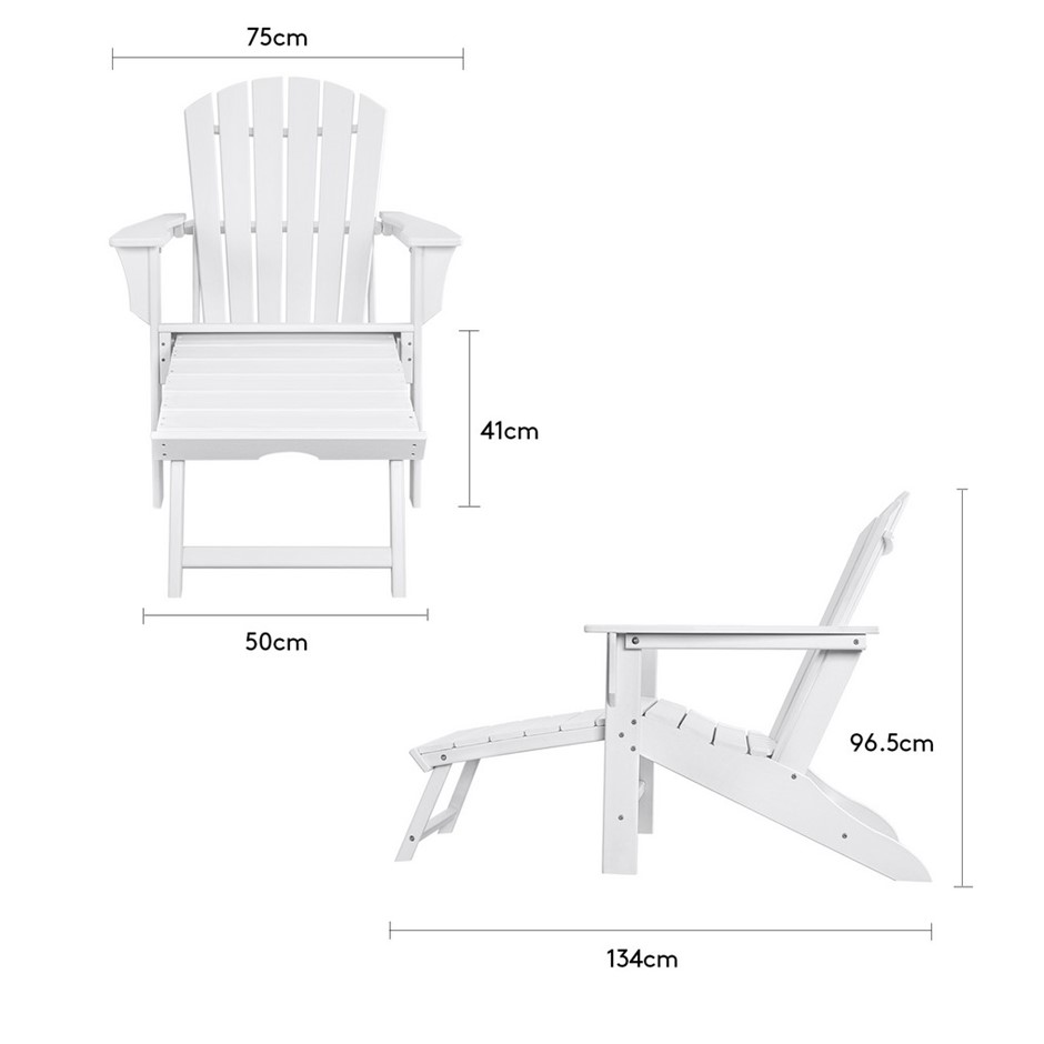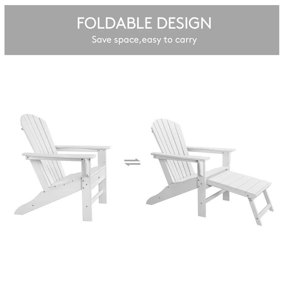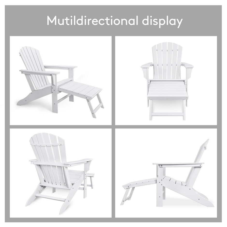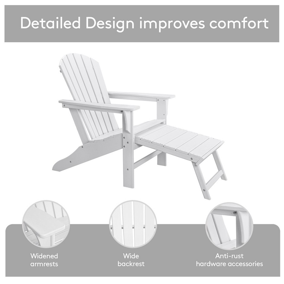 EHOMMATE HDPE Outdoor Adirondack Chair with Footrest White