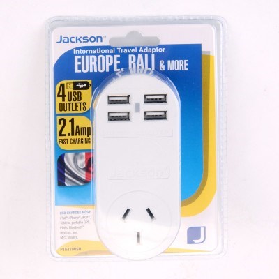 Don't get caught without power on your next overseas trip! Suitable for use in countries that use the European style outlet, this travel charger adapts Australian and New Zealand mains plugs for use overseas. It's also fitted with a 2.1 Amp Fast USB charger for super fast charging of up to 4 of your electronic devices. A travel adaptor and a USB hub in one, this convenient gadget is a suitcase essential.