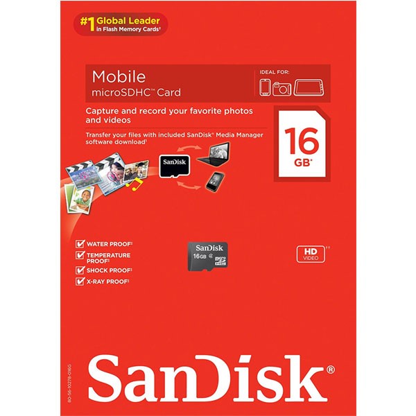 Introduction Reliability for Everyday Use Don?€?t compromise on quality when it comes to protecting your precious data. Down to every component, SanDisk SD??? and SDHC??? memory cards are designed, built and proven to withstand all life?€?s little bumps and turns ?€? so you can enjoy life on the go. Store Your World In Ours! Product Features and Benefits: - Available in 2GB, 4GB, 8GB, 16GB, and 32GB - Class-4 enabled: Speed performance rating enables you to maximize your phone's full range of features - Full HD video: Watch hours of higher-quality videos on the move - Photos: Snap photos freely knowing you have extensive storage capacity - Music: Download ringtones to music libraries on the go - Gaming: Play your favorite games where ever you are - Business: Turn your phone into a mobile office with easy access to saved presentations, spreadsheets, and files - SanDisk?? Media Manager software means you can easily organize and transfer your files between your PC and phone - Waterproof, temperature proof, shock proof, vibration proof, and x-ray proof