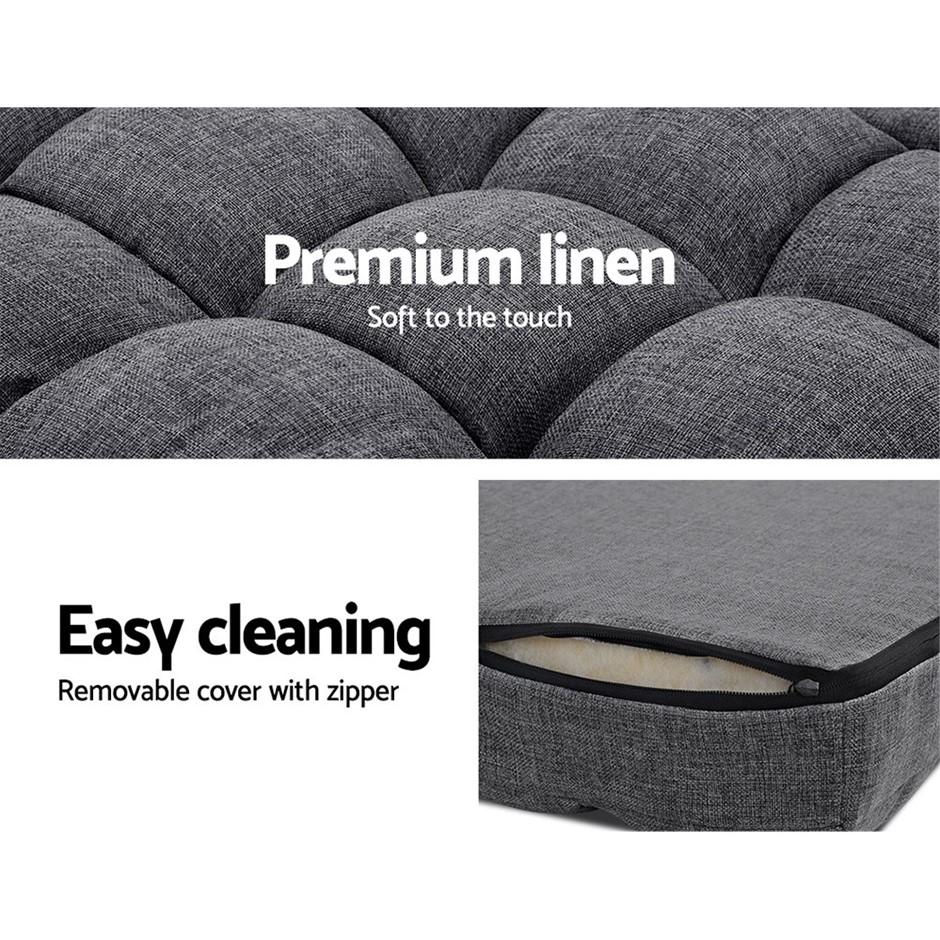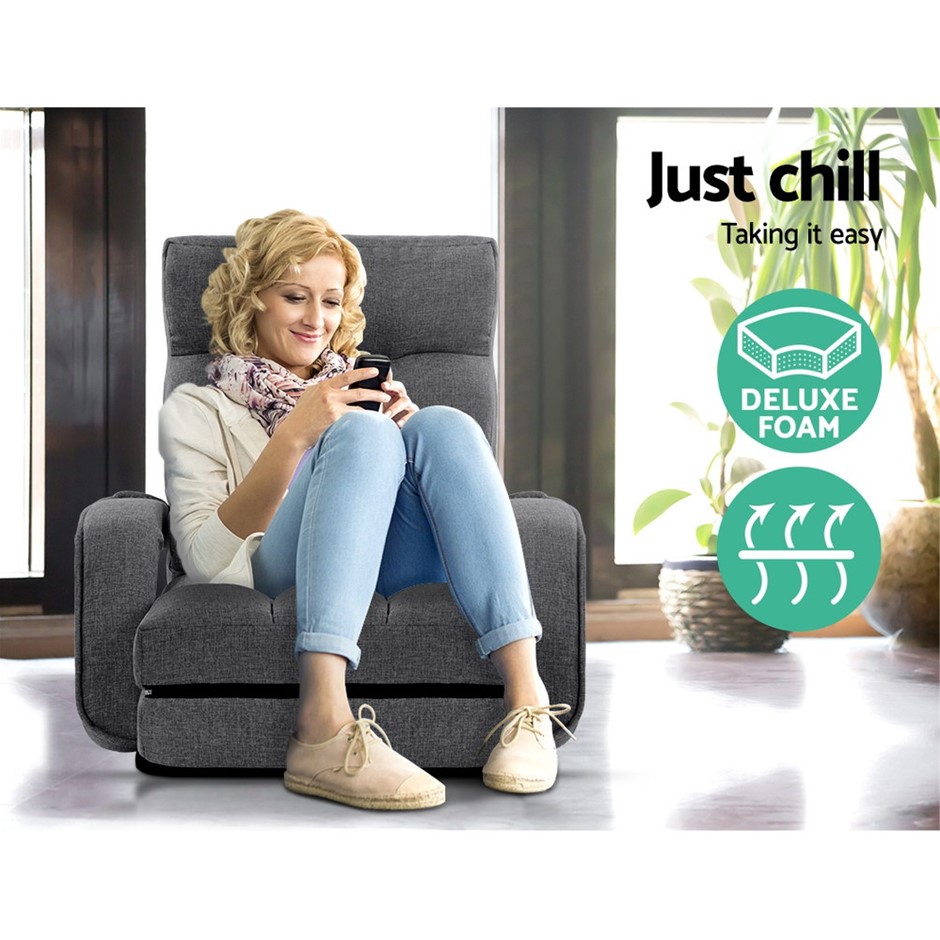 Artiss Lounge Sofa Armchair Floor Recliner Linen Folding Chair Adjustable