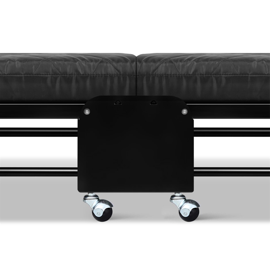 Scrambling for a spare bed when friends and relos sleepover? Or you need one for a camping or outdoor trip? Look no further than our Folding Bed. With a 4.8cm thick mattress of high density foam set on a durable powder-coated metal frame; our folding bed is as comfortable as it is practical. More so with its unfolded length of 1.95m; five adjustable headrest positions and a weight capacity of up to 110kg. That means anyone six feet tall and of a fairly heavy set can still get a relatively good night’s rest on our portable single bed. Plus; the solid constructed base helps to ensure a steady structure; even with the most robust sleeping manoeurves. And when it’s done; just fold; latch it and cart it away on its four castor wheels (two with brakes) for storage until the next use.