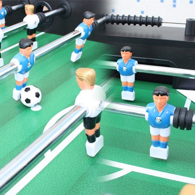 Hours of table football fun are in store with our Soccer Table with Scoring. Whether it's for well-deserved employee downtime at the office or entertaining guests at home, table football is always a favorite and is sure to please. Challenge a friend, or for the ultimate in competition, invite three friends for two-on-two action. The table is 139.7 cm long (55 inches), and features an updated modern style that will look good in any game room, rec room, or office space. Overall durable construction, including 12 mm sturdy square legs, ensure the table can handle all the excitement of an intense game. And best of all, the table is equipped with scoring,so you won't have to stop the action to hassle over keeping score. The Soccer Table with Scoring is a great way to entertain, with the style and durability to be a welcome addition to your home. Don't wait; soccer fun awaits!