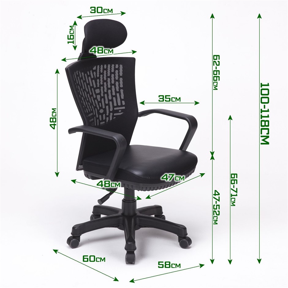 1x Korean Made Mesh Back Office Chair with Head Rest Black