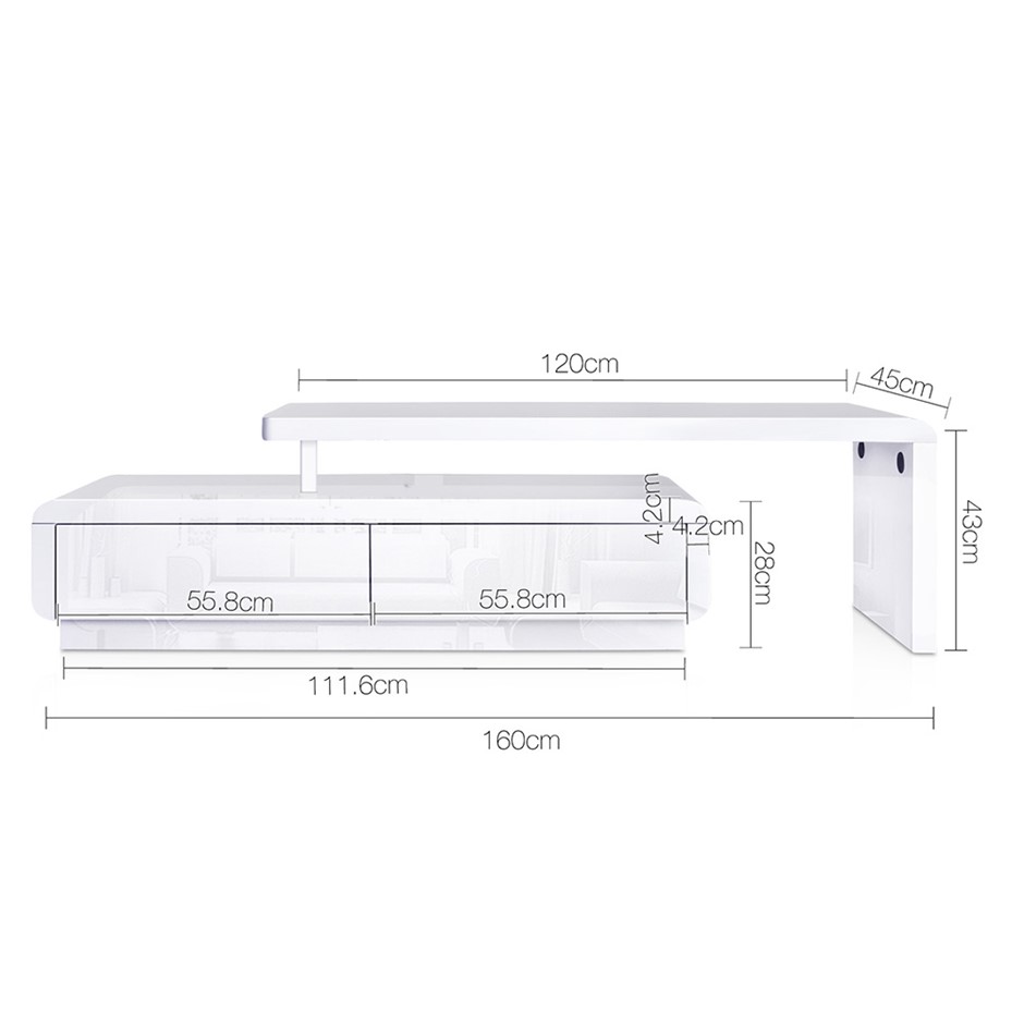 Your treasured home entertainment system deserves the best cabinet for it. And that’s why our high gloss TV stand come entertainment cabinet is the ideal choice for you. Incorporating a contemporary design and presented with a high gloss finish, our TV stand displays great craftsmanship with generous storage for all your entertainment accessories. The high quality MDF boards also offer strong and durable support and are treated for scratch and water proofing. Exclusively designed with an adjustable L shaped structure, adding the flexibility for setting up the unit.