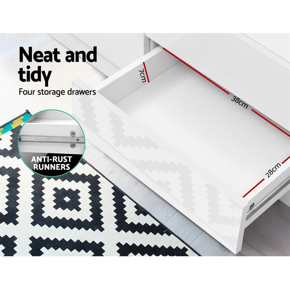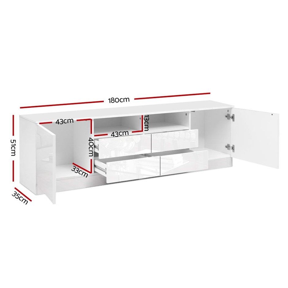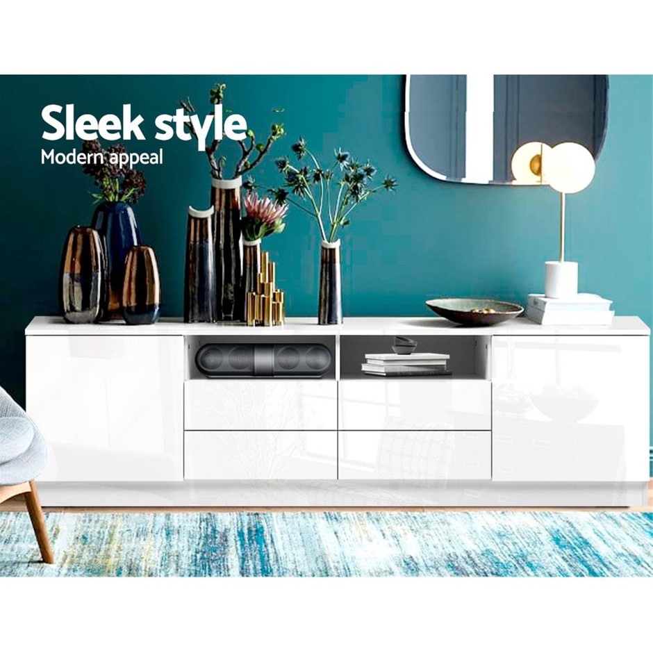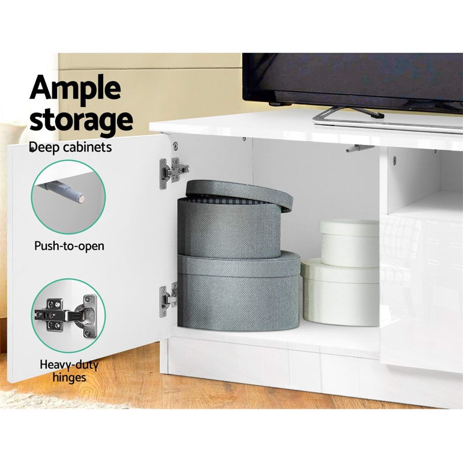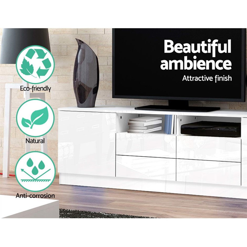 Need a stylish and modern entertainment unit for your home? Look no further than our Artiss Entertainment Unit which is absolutely stunning in every aspect. Made of particle board, the compact and functional entertainment unit is sturdy and durable with equally fine hardware to ensure trouble-free use every time. The UV paint finish on the front side is flawless and smooth to the touch with its high gloss appeal. The unit will be the perfect addition for your modern living room with its contemporary and linear design. And it offers ample storage space with two open shelves, two deep cabinets and four drawers for all your entertainment essentials. Better still, the ensemble is made handle-free with push-to-open cabinet doors for a sleek appearance.