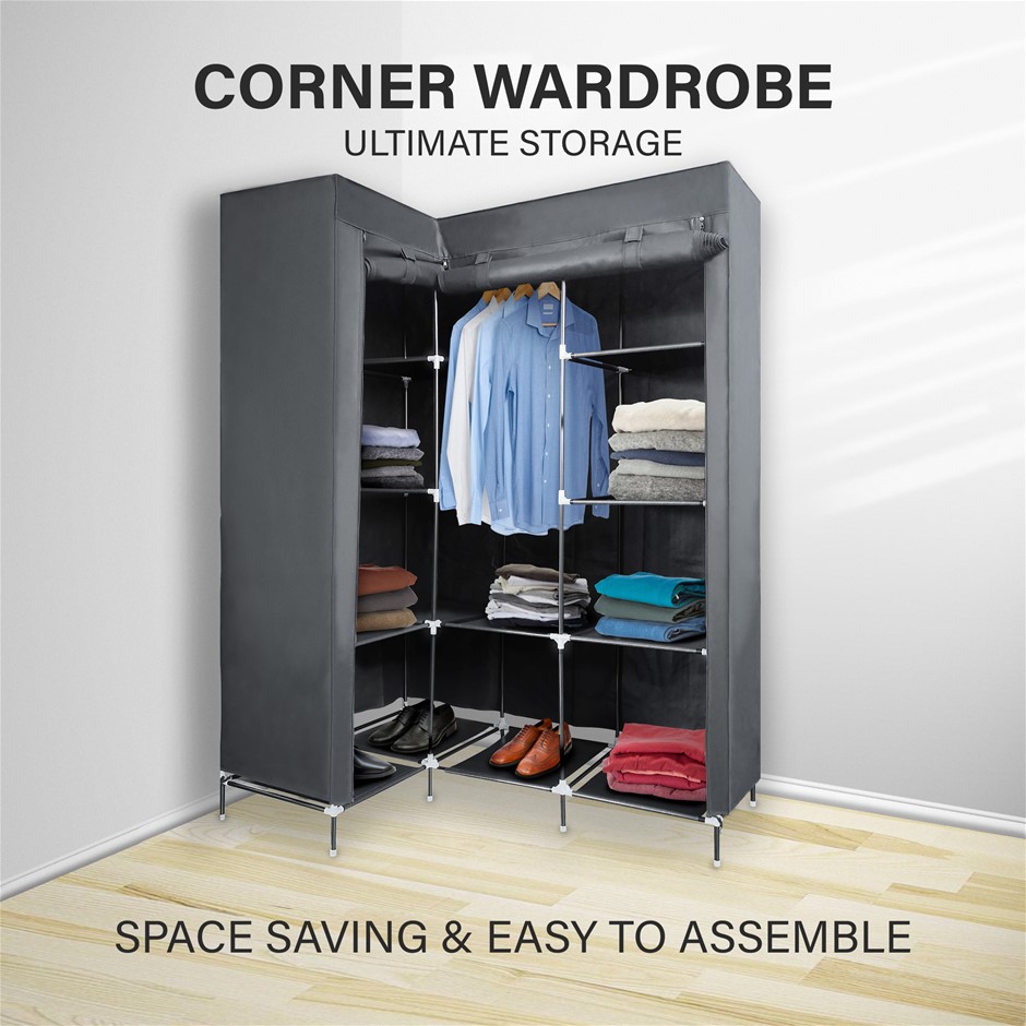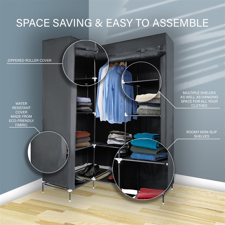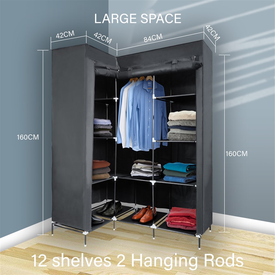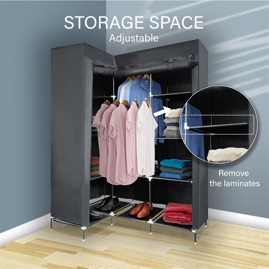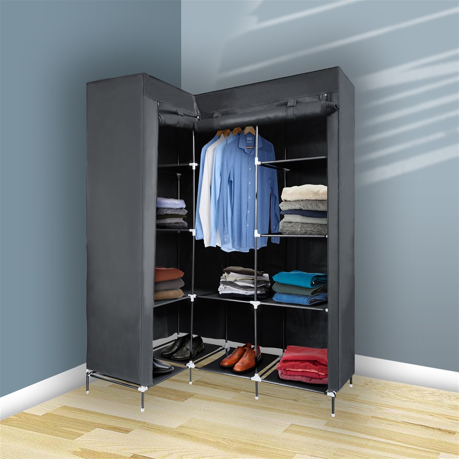 Portable Wardrobe Clothes Storage Cabinet w/ Shelves L Shape Organizer Fabric AU (NEW)