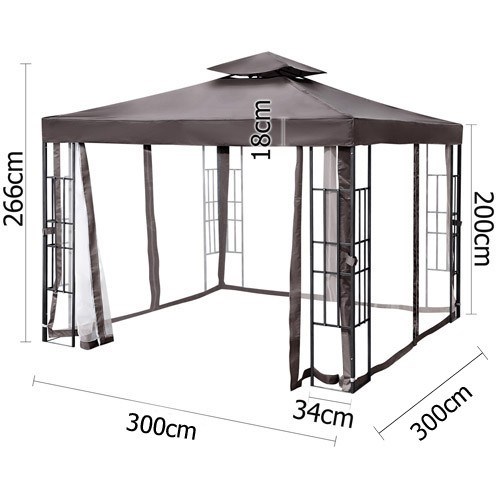 Designed with semi transparent flyscreens, it creates a touch of contemporary elegance and royal feel to the marquee. It is fitted with zips where you can easily close all four sides creating an enclosed area. Made to provide you a comfortable shaded area to enjoy your festive meals, it features a 420D oxford with PVC coating top cover which is waterproof and 99% UV resistant. It's also designed with a twin roof, providing better ventilation when the flyscreens are closed. Constructed with anti-rust durable coated steel frame, this will be one that will withstand the wind and rain.