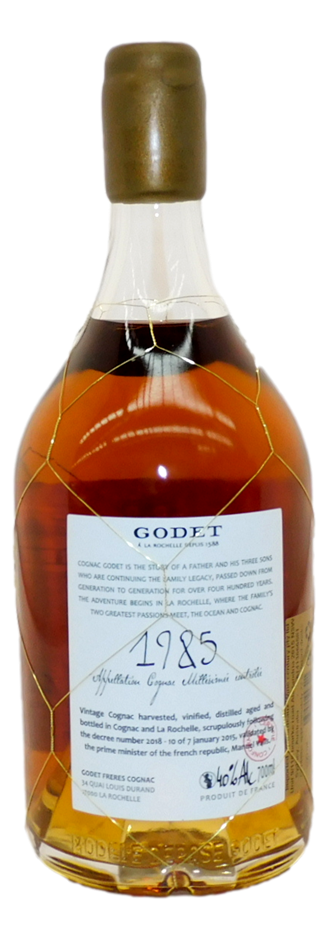 Godet Grande Champagne Cognac 1985 (1x 700mL), France, Cork.