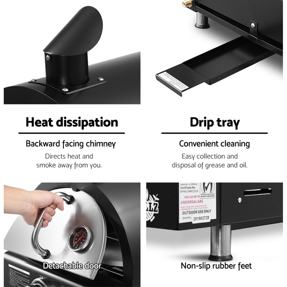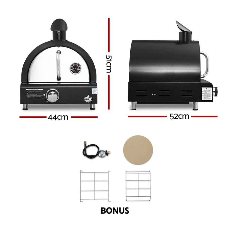 Grillz Portable Pizza Oven BBQ Camping LPG Gas Grill Cook Stove