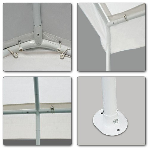 As big as the Wedding Gazebo is, set up is only a piece of cake without tools. The pole tent requires a relatively small number of easily-identified parts and you do not have to be an expert for it. The walls are attached with Velcro fasteners for easy assembly. Additionally, the tent comes down just as easy as it goes up.