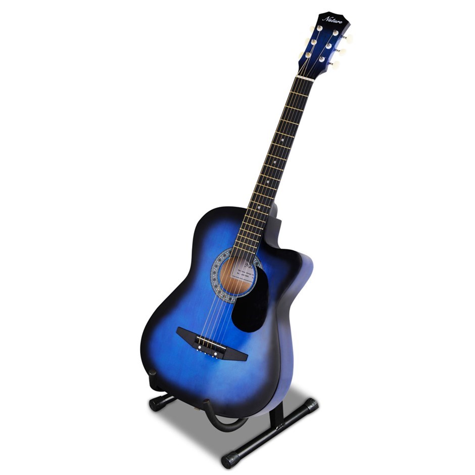 Acoustic Cutaway Guitar in Blue with Steel String Stand Strap