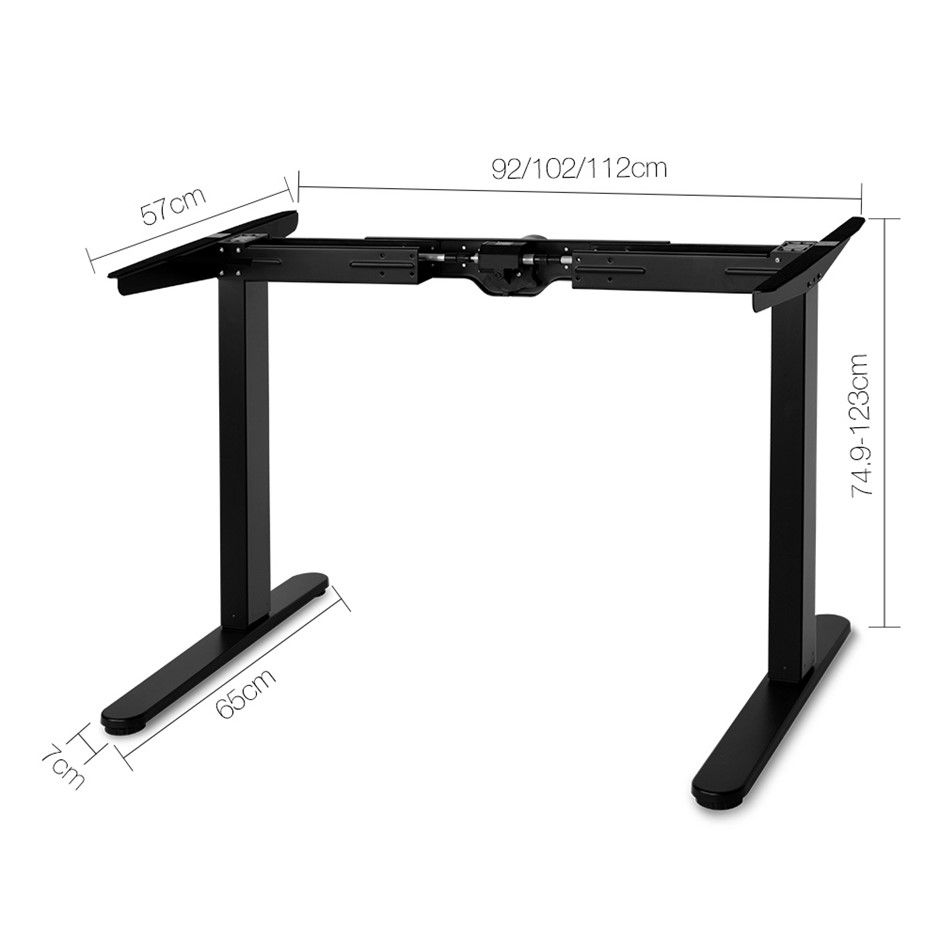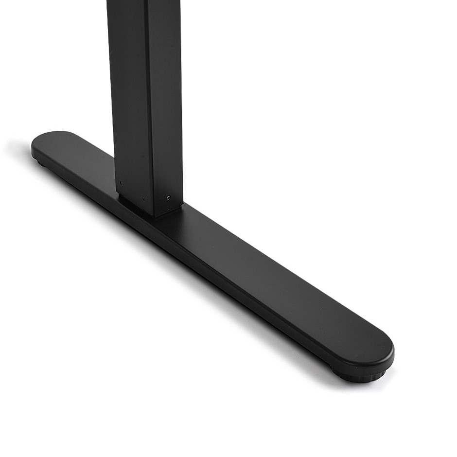 The stand comprises a minalist motorized height adjustable desk frame and operates quietly and smoothly.