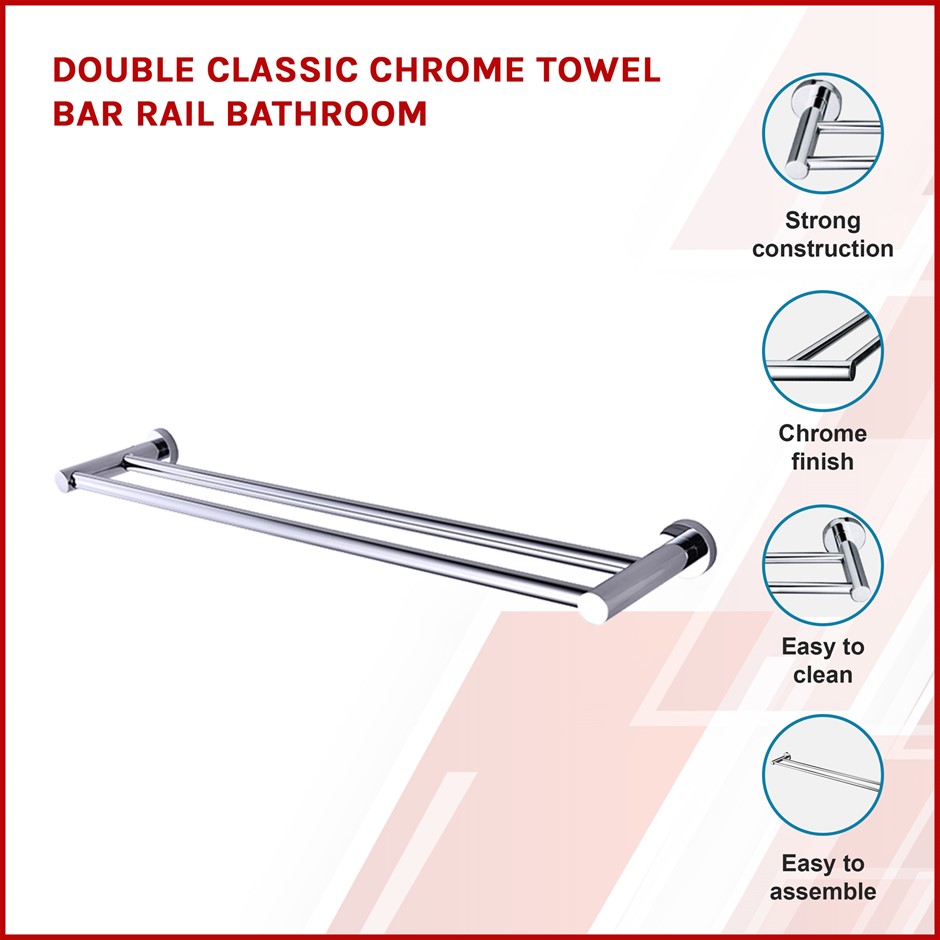 Double Classic Chrome Towel Bar Rail Bathroom