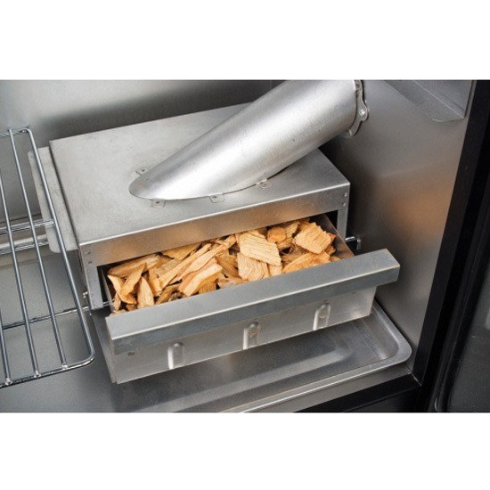 • Side access wood chip chute, so you do not have to open door allowing heat and smoke to escape