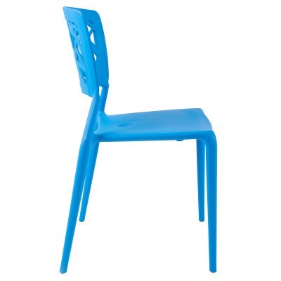 Modelled after the famous Dondoli e Pocci design loved by cafes and restaurants all over the world, this versatile side chair set features a one-piece stackable shape constructed of brand new plastic. Easily adaptable to any environment or decor, the Viento's soft lines and ultramodern webbed back rest is suitable for use both inside at the dining table or outdoors by the pool or BBQ.