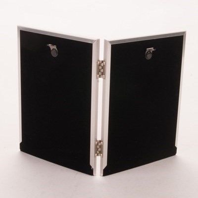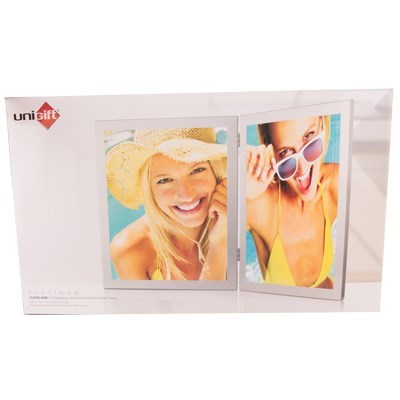 Display your favourite portrait shots proudly in this beautifully designed folding photo frame with a shiny silver finish from UniGift. Holding two 20cm x 25cm photos, the openings are backed to keep your photos snug and secure. This stylish and contemporary double-sided photo frame will add a special touch to any shelf, mantelpiece or table in the home or office.