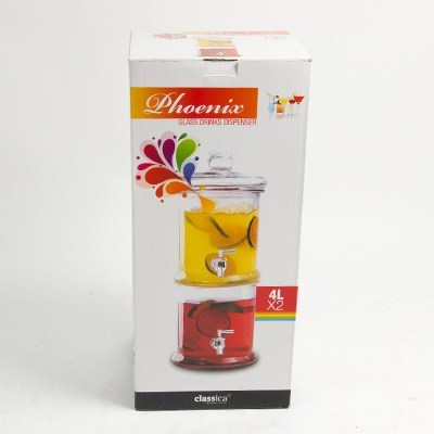 Serve up some delicious beverages at your next party with this elegant 2-tier glass drink dispenser from Classica. Featuring a high quality glass body and lid and easy to use taps, liven up your next event and spend more time enjoying the company of your guests instead of constantly topping up their drinks. With a 4 litre capacity for each dispenser, the party will never end and is ideal for cocktails, punches, other mixed drinks and even iced water.
