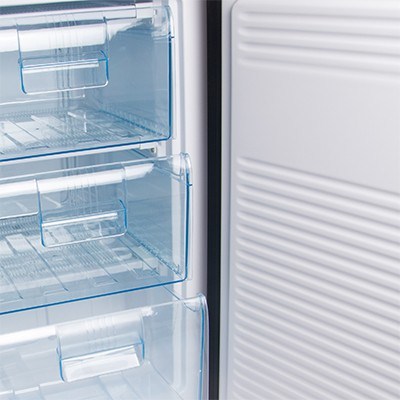 Compact yet durable this upright mini freezer has loads of bin storage space to keep food within sight and reach for easy access. It is perfect for spaces where you need just a little bit more freezing capacity - but you don't want to take up a lot of room with a huge chest freezer. Featuring three durable plastic (removable) baskets never feel guilty for buying extra groceries again. You can also say goodbye to walking out to the garage to get your frozen food - this freezer is so small it fits easily in most pantries, laundry rooms - almost anywhere! With a stainless steel finish, this 82 litre freezer is sure to impress.