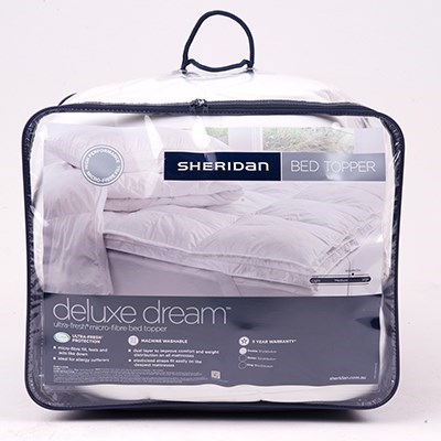 Nothing will top your bed like the Sheridan Deluxe Dream Bed Topper! Luxuriously lofty, this ultra comfortable bedding features a micro-fibre fill that feels just like natural feather or down, all encased in a high thread count cotton sateen cover. Suitable for allergy sufferers, it's the perfect way to upgrade your mattress without hurting your wallet.