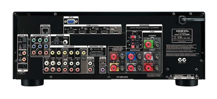 The HT-R690 network A/V receiver offers a perfect balance of audio performance, content integration, and media-enhancement features at an affordable price. This model adds Qdeo™ video upscaling, which smoothly converts standard video to stunning 4K (3840 x 2160) resolution; home network connectivity for PC-based audio, internet radio, and music streaming; an easy-access USB for iPod/iPhone; and Powered Zone 2 outputs for distributed audio playback in another room. Four HDMI? inputs and high-quality processing chips easily handle at the latest high-definition formats, such as Dolby® True HD, 3D, and DTS-HD Master Audio™. An HDMI Audio Return Channel brings spectacular sound to your favorite TV shows. The HT-R690 also incorporates a suite of technologies from Audyssey. Acoustic correction customizes the surround sound balance for your room, while Dynamic EQ® and Dynamic Volume® adjust the audio mix automatically, so you aren't deafened by commercials or straining to hear dialogue in a movie. The HT-R690 has the muscle to deliver 7.1 channels of immersive surround sound in larger rooms thanks to Onkyo's acclaimed amplifier design. We think you'll be hard-pressed to find a better-equipped or better-sounding A/V receiver in this category.