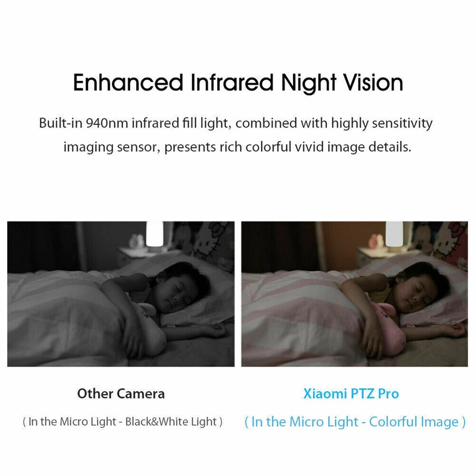 The 940-nm infrared light with no visible red glow leaves you and your family to sleep undisturbed; features a high-sensitivity image sensor, and displays colour video in low-light