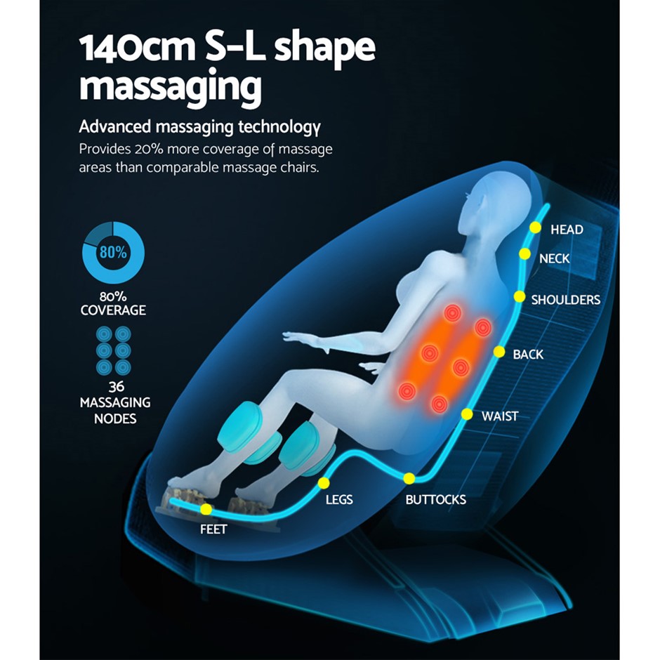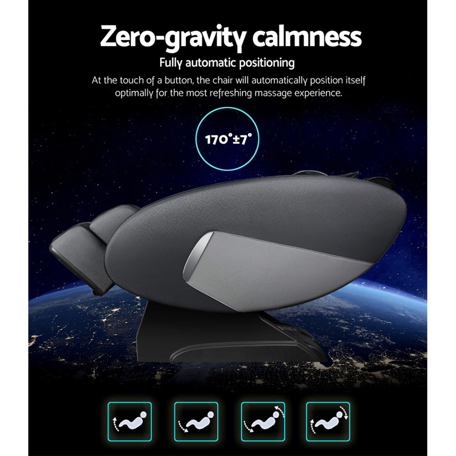 FeaturesFull auto extension3 speed and intensity levels3 full body auto massage programs9 targeted massage modesSleeping modeRemote with screenZero-gravity massageAdvanced massage technologyCalf and foot roller massageLeg adjustmentHeating function on the backBuilt-in wheels3 Year Warranty