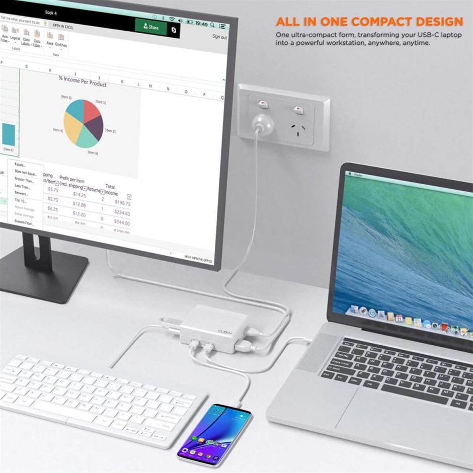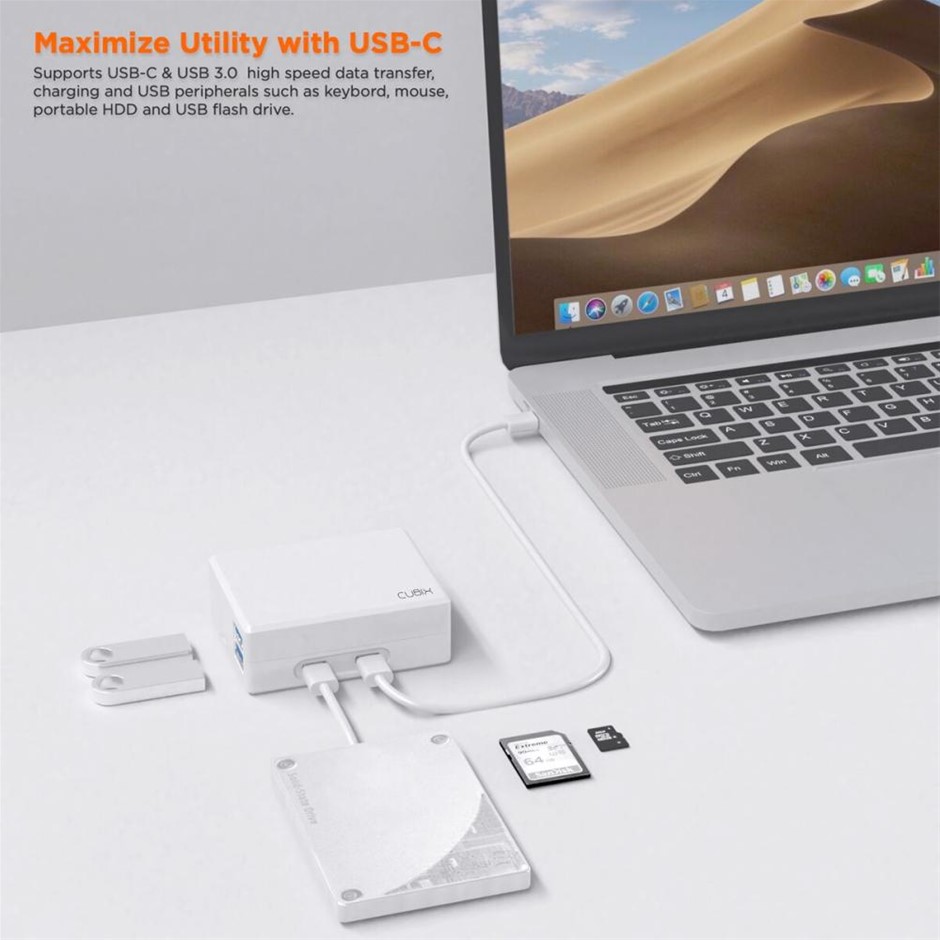 mbeat MB-CUB-01W Cubix portable USB-C Docking Station with Built-in Power (White Colour)(New)