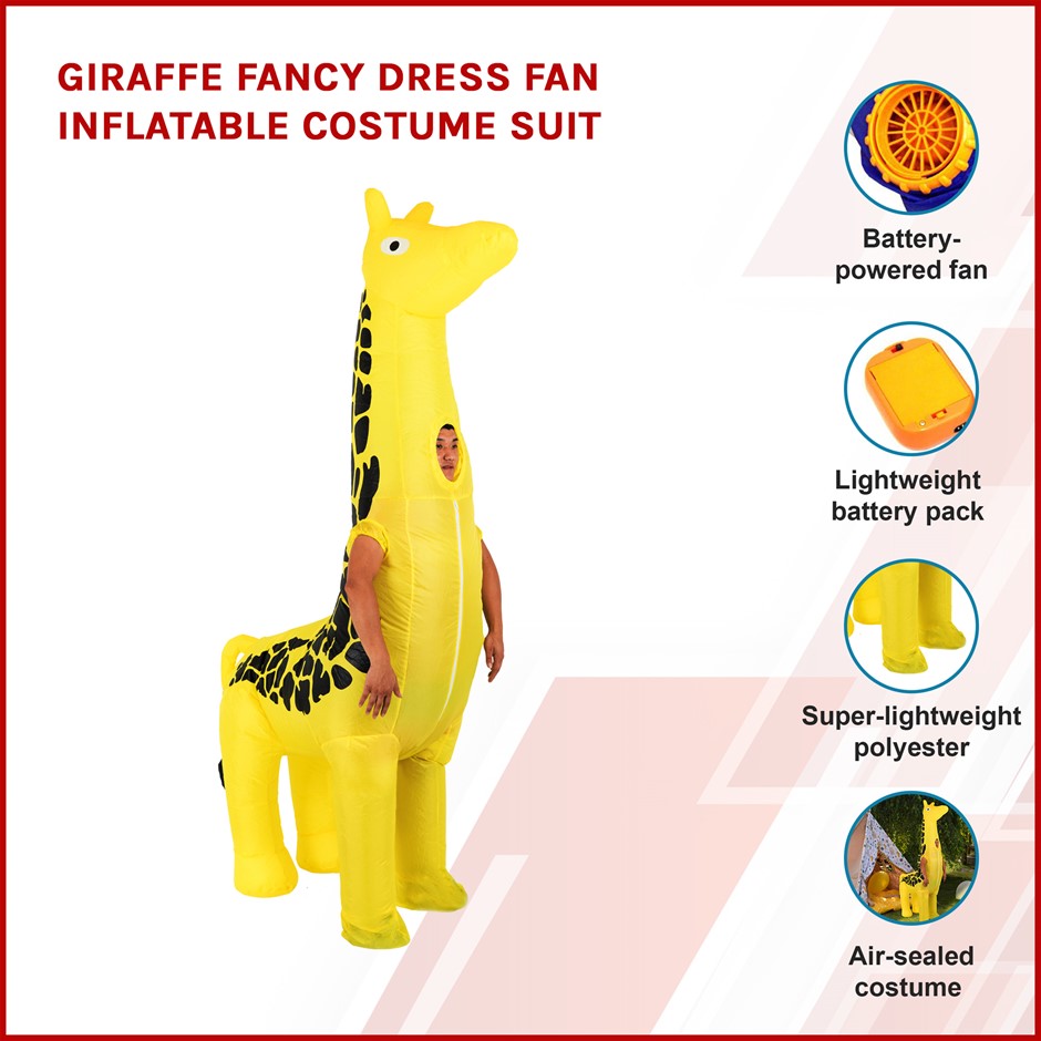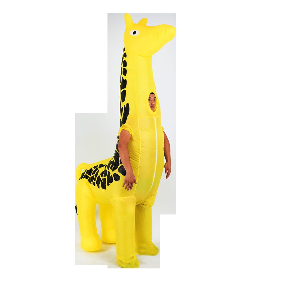 Stand out from the crowd with our Giraffe Design Inflatable Fan-Operated Costume. The size of your costume will be impressive, but your effort in hauling it around will not be.
