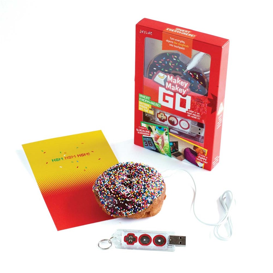 Makey Makey GO allows today’s tinkerers, dreamers, and makers the mobility to invent anytime, anywhere. Makey Makey GO enables you to invent on the go – and change the world – with the snap of an alligator clip, transforming everyday objects into Internet touchpads. Small enough to fit on your keychain or in your pocket, Makey Makey GO promises to inspire even more science, technology, engineering, art and math (STEAM) projects than the original, award-winning Makey Makey – named one of Consumer Reports’ “Best Tech Toys of 2014.” Turn everyday objects like bananas into touchpads!