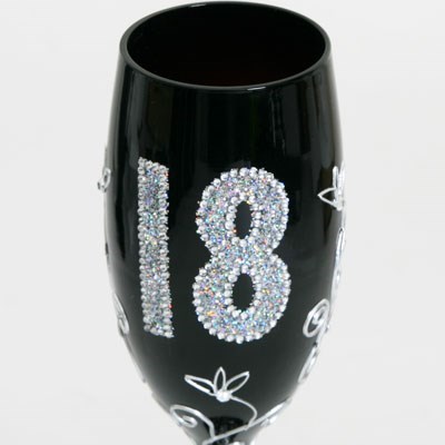 From the craftsmanship to the packaging, no detail has been left untouched. Each glass has been individually produced using a delicate hand blow process and comes packaged in a silk lined presentation box with ribbon ties. The celebration flute itself has the number 18 on the front displayed in a flash of glitter and diamantes! Surrounding the number in silver is a whirl of flowers and swirls, giving this flute the finishing touch it deserves.