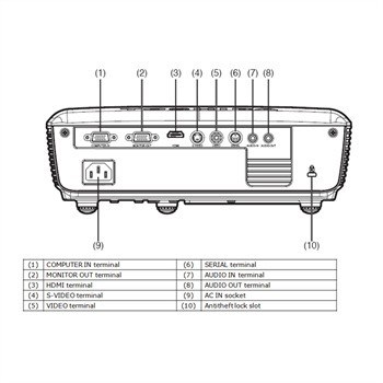 • Inputs: HDMI, RGB, Composite, S video, RS-232C, Mini Jack (when input is RGB/Component/Composite/S video)