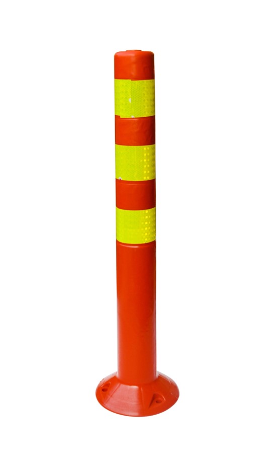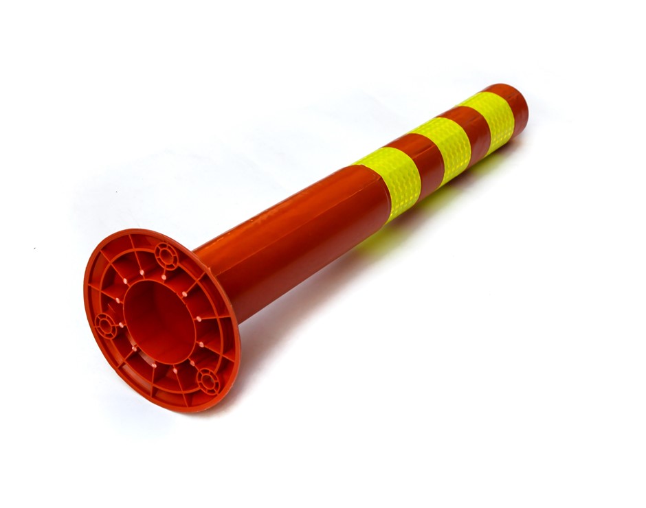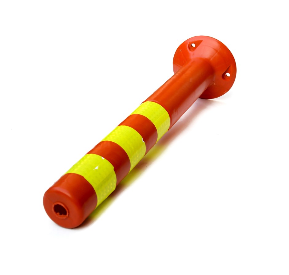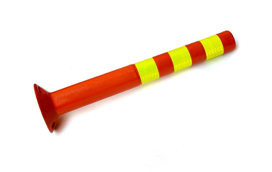 In fluorescent orange and yellow, this set of four plastic traffic bollards from Randy & Travis Machinery is perfect for traffic control, crowd control, or marking off spills, potholes, construction areas, or other hazards. Crafted from durable, yet forgiving plastic, these bollards can hold up under the thumps and bumps of a car park, yet not damage the vehicles that run into them.