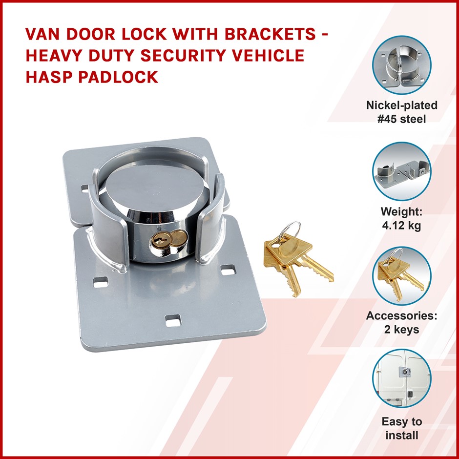 With heavy-duty 45# steel construction, this nickel-plated lock is perfect for not only your van, but your garage, your shed, or storage buildings at your facility. For tradesmen and others who keep equipment, tools, and goods, this sturdy lock is a must-have.