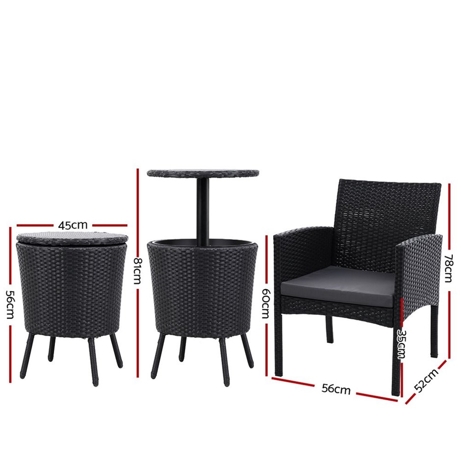 Package Content2 x Gardeon Outdoor Chair1 x 3-in-1 Wicker Cooler Table