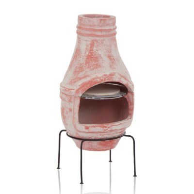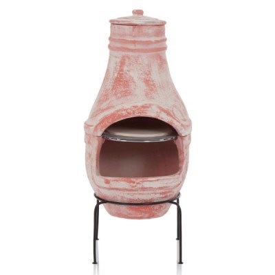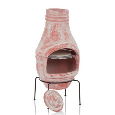 Rustic Clay Chiminea with Pizza Oven - 75cm Height