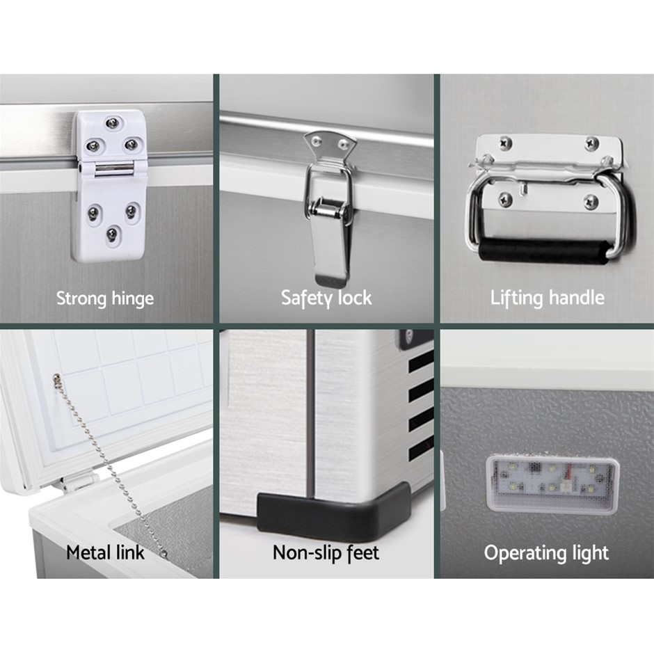 The 70W compressor is energy-efficient and consumes only 1.68kWh for 24hrs. When running on DC power, the battery also has a 3-stage battery overcharging protection. It's also made to take in all the knocks and bumps of travelling with strong hinges, safety lock, non-slip base and lifting handle. The top cover comes with built-in recessed cup holders for four cups.