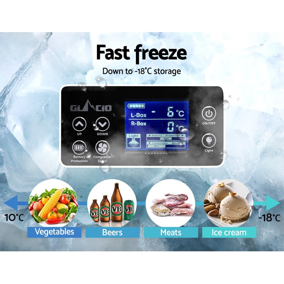Glacio 85L Portable Fridge Freezer Fridges Cooler Camping 12V/24V/240V