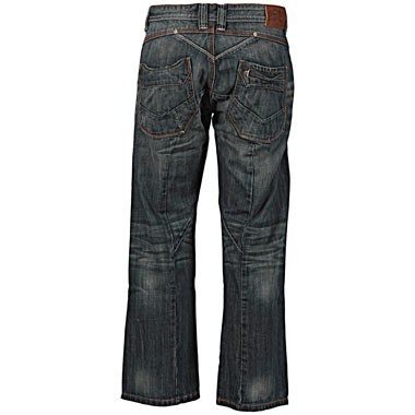 6 pocket jean, contrasted stitching, bootcut finish, zip fly with button fastening.