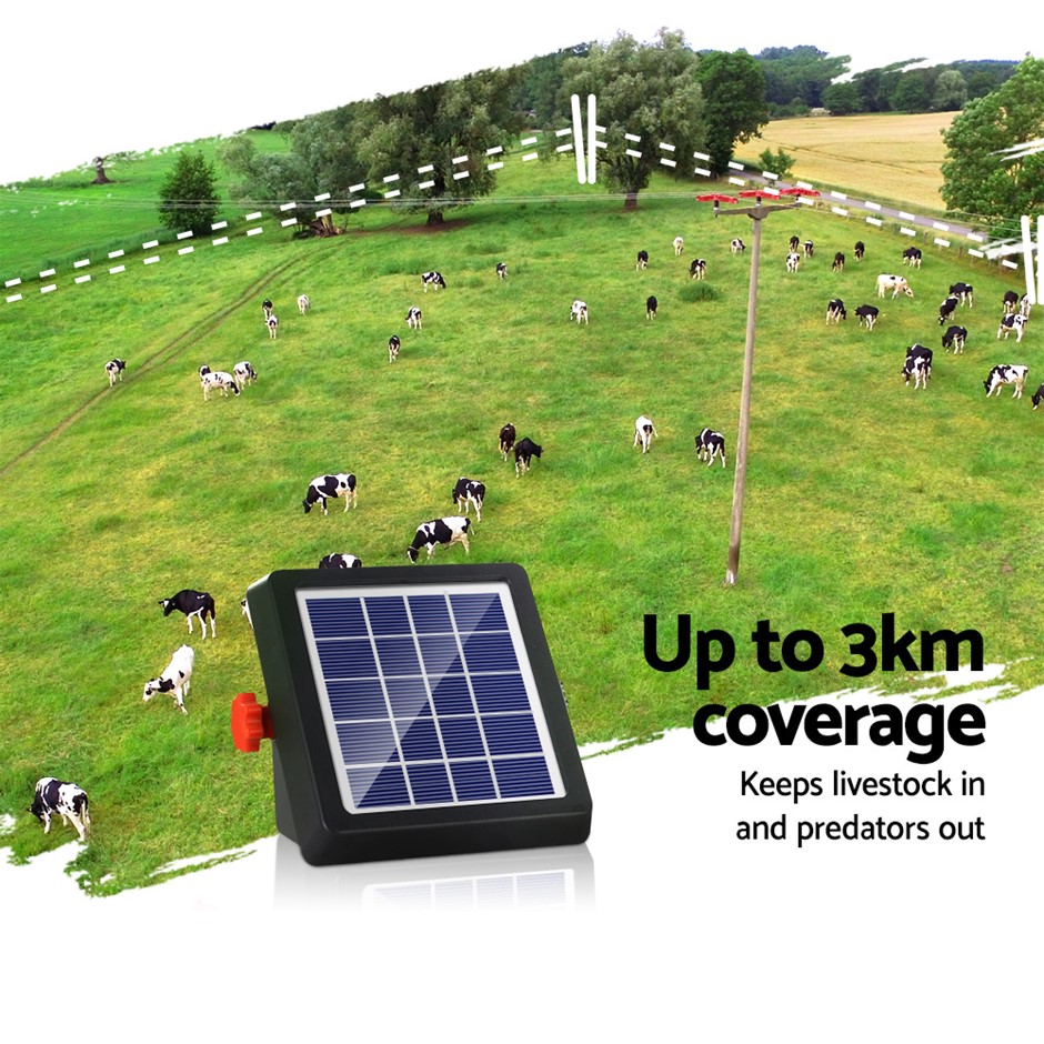 Ever worried about livestock and animals escaping your property? This Solar Electric Fence Energiser is the ideal product for you. Whether for the farm or just around your suburban home, the solar fence energiser can perform effectively in either environment. The unit charges using solar power, but in case of poor weather a fully charged battery lasts for up to 20-29 sunless days. No need to worry about the rain; the energiser is also waterproof. If the fence is activated by an animal, the unit will generate a brief pulse as the voltage will drop from 8KV to 1.5KV to prevent harmful electric shocks. Featuring a simple installation design, you can have it up in a matter of minutes. Compact, lightweight and versatile, the soar fence energiser is an effective low maintenance solution to protect your property and livestock.