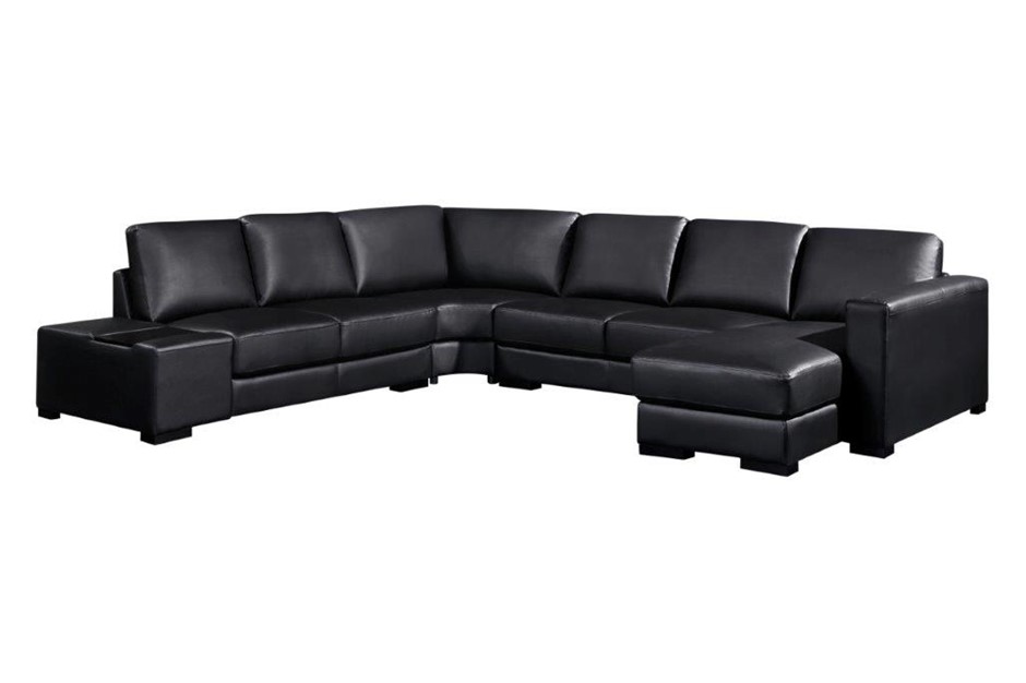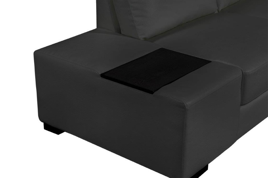 ? Modern Sectional Sofa? Upholstered in Premium Bonded Leather? High Density Foam to give Comfort and Support? Sturdy Construction with Solid Wood Structure? Wooden End Table on One Side of the Sectional? Solid Wood Legs in Espresso Colour? Smart Soft Packaging