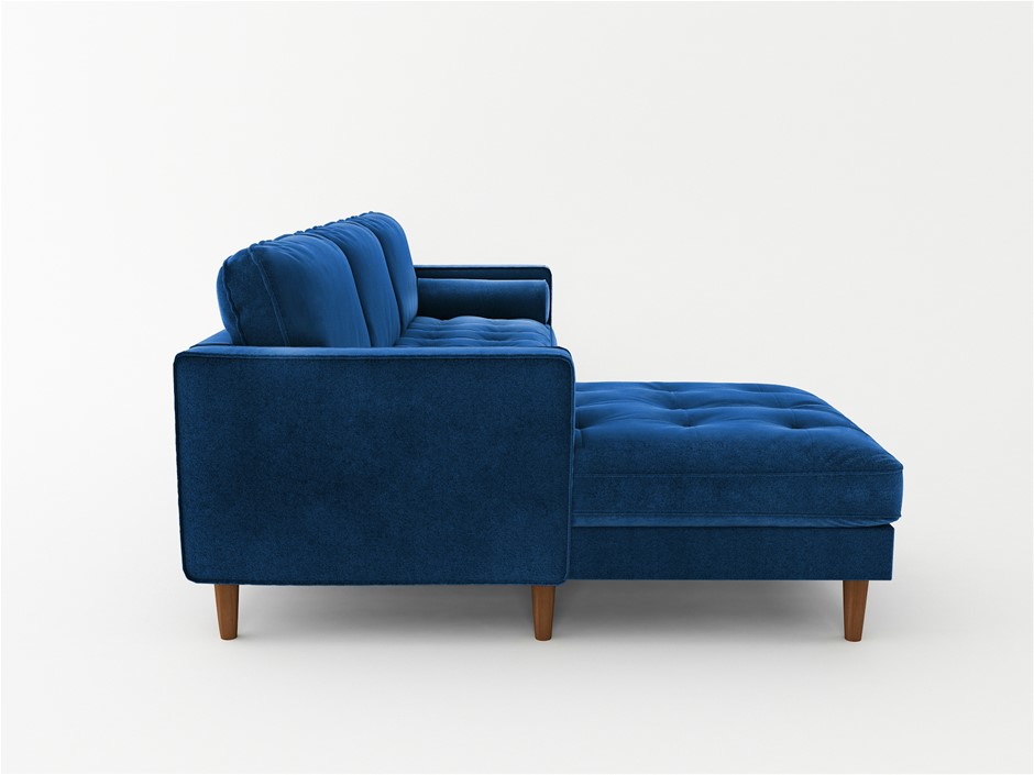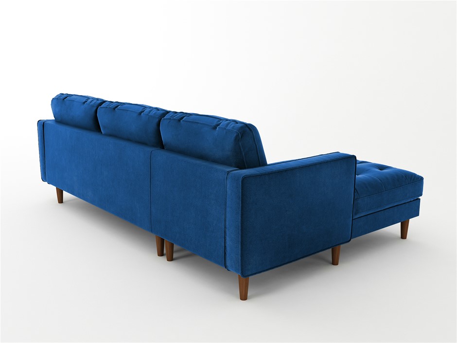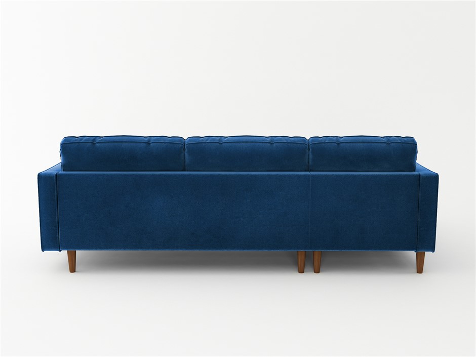 Royal Grandeur Aesthetic Navy Blue colour and fluffy cushioning of this sofa make it stand out from its contemporary fellows. Designed with style and comfort in mind, the spacious chaise and added pillows give this sofa an inviting look, while the quilted seats with plump cushioning give it a royal touch.