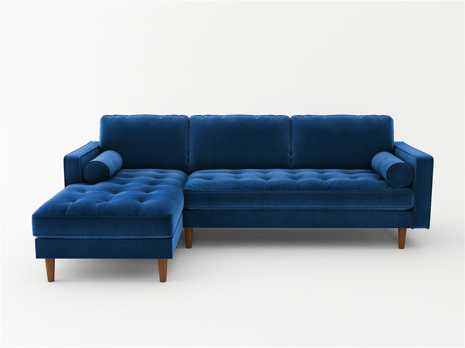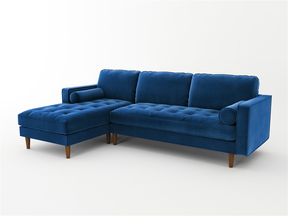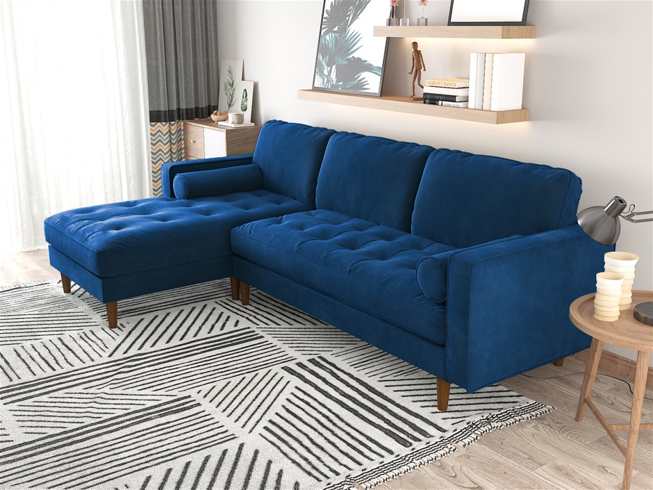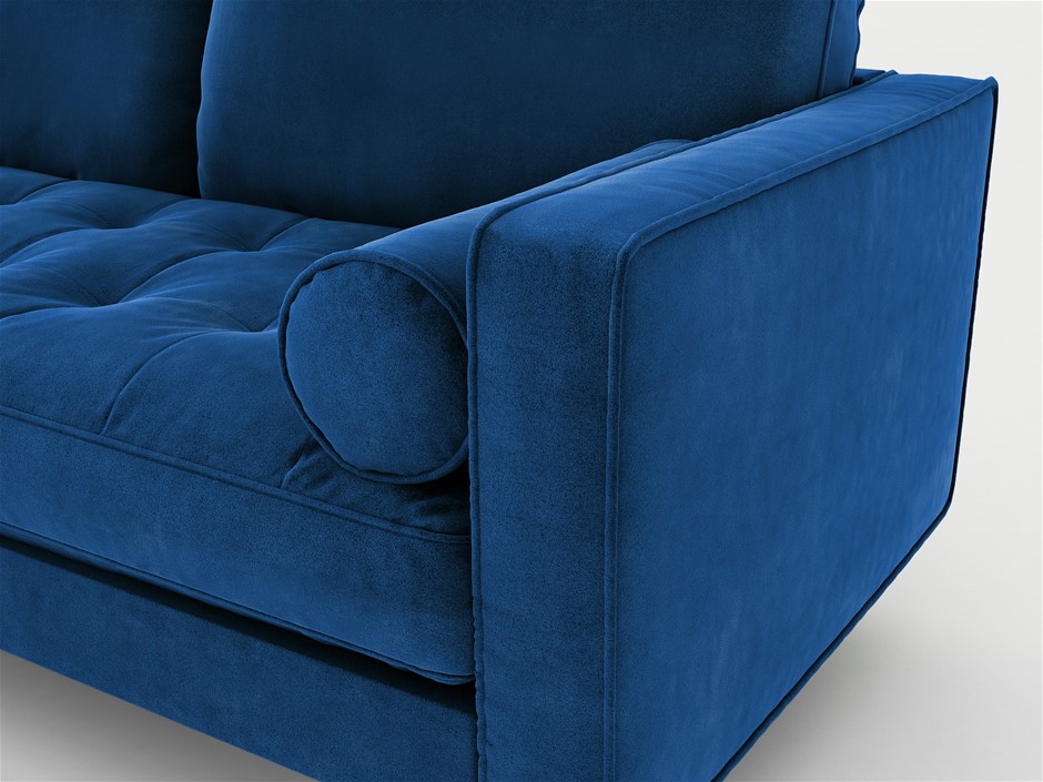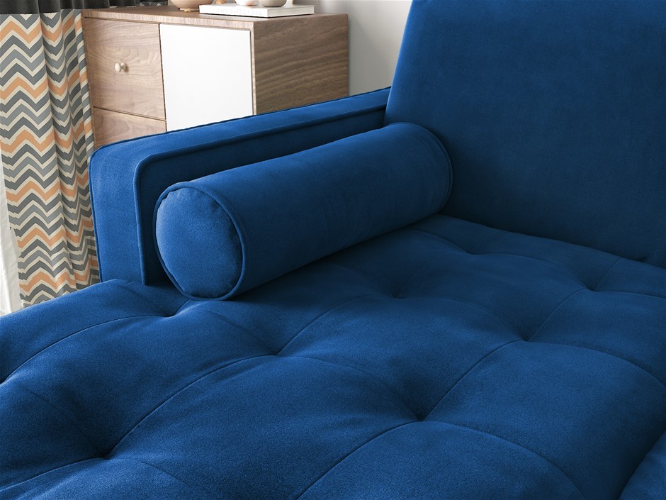 Velvet Upholstery 2 Seater Tufted Sofa Blue Color Lounge Set Couch Chaise