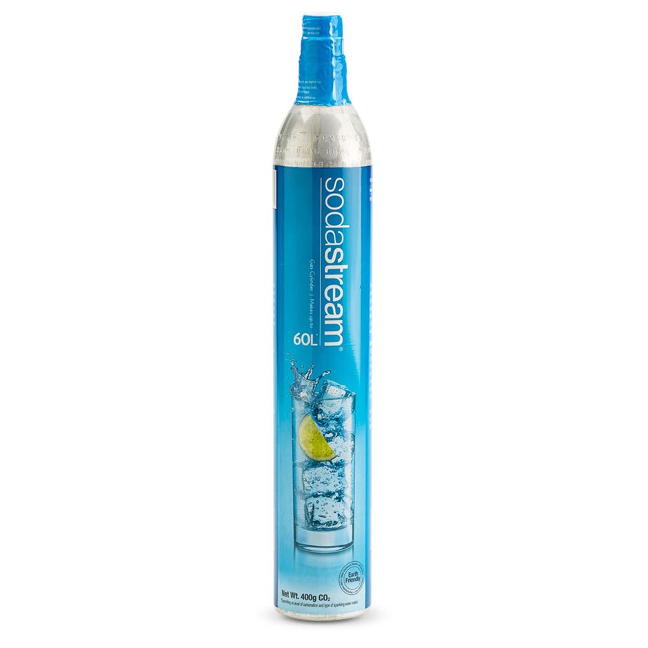 SodaStream Sparkling Water Maker comes with a 60 litre CO2 Cylinder that makes up to 60 bottles of sparkling water!
