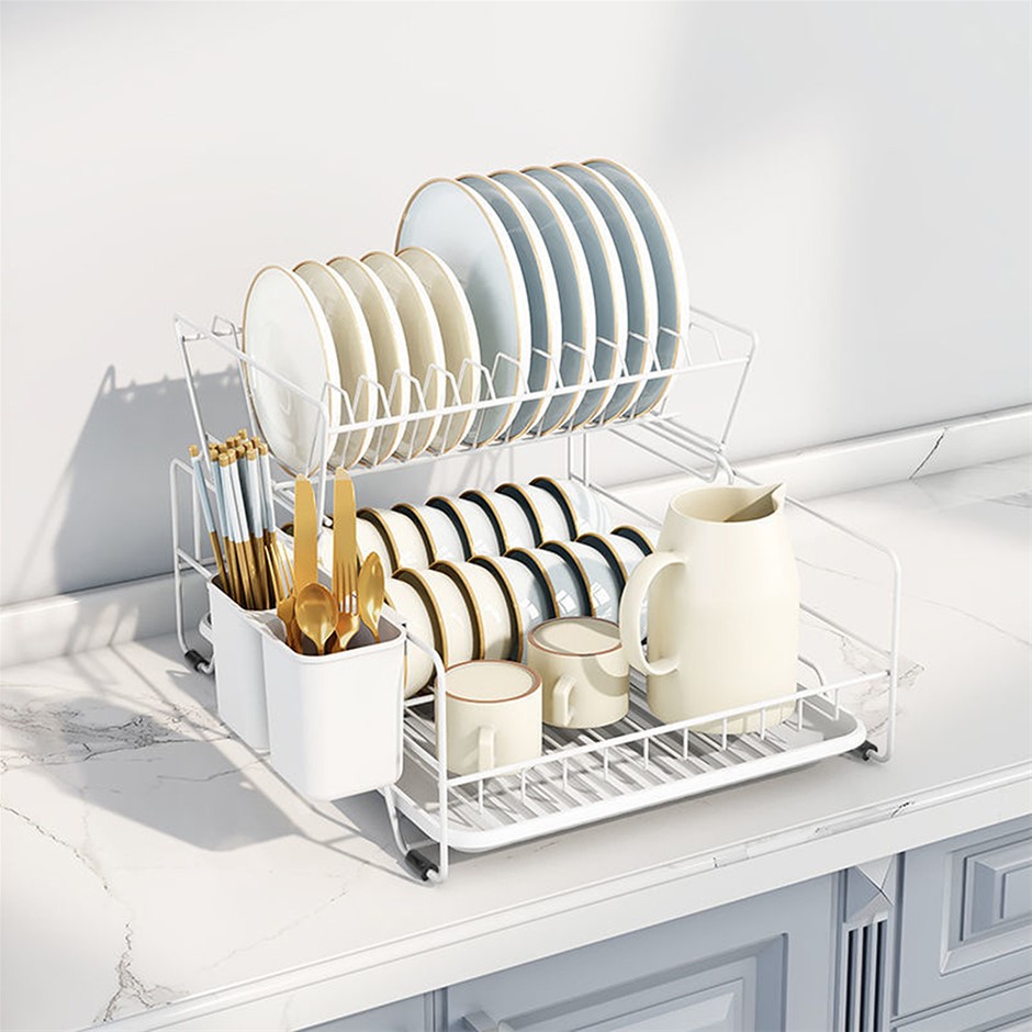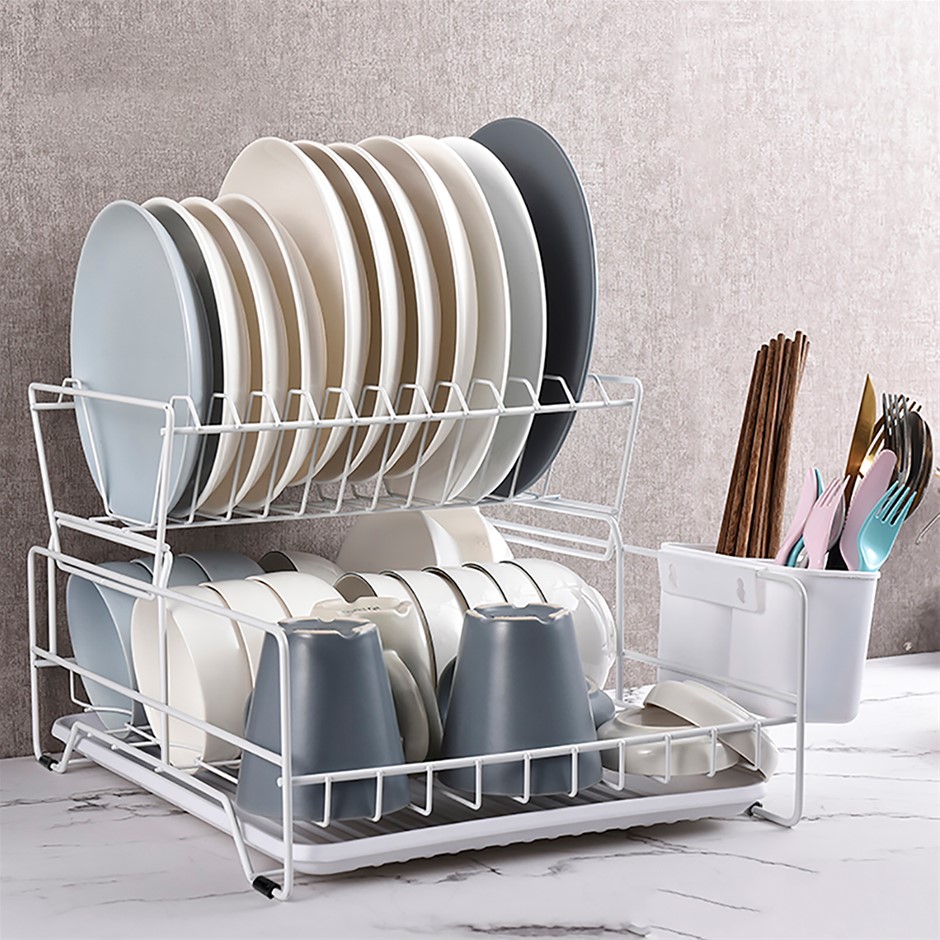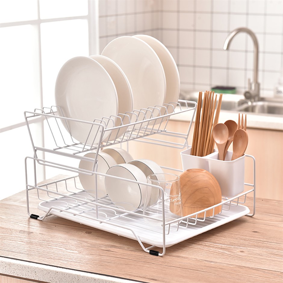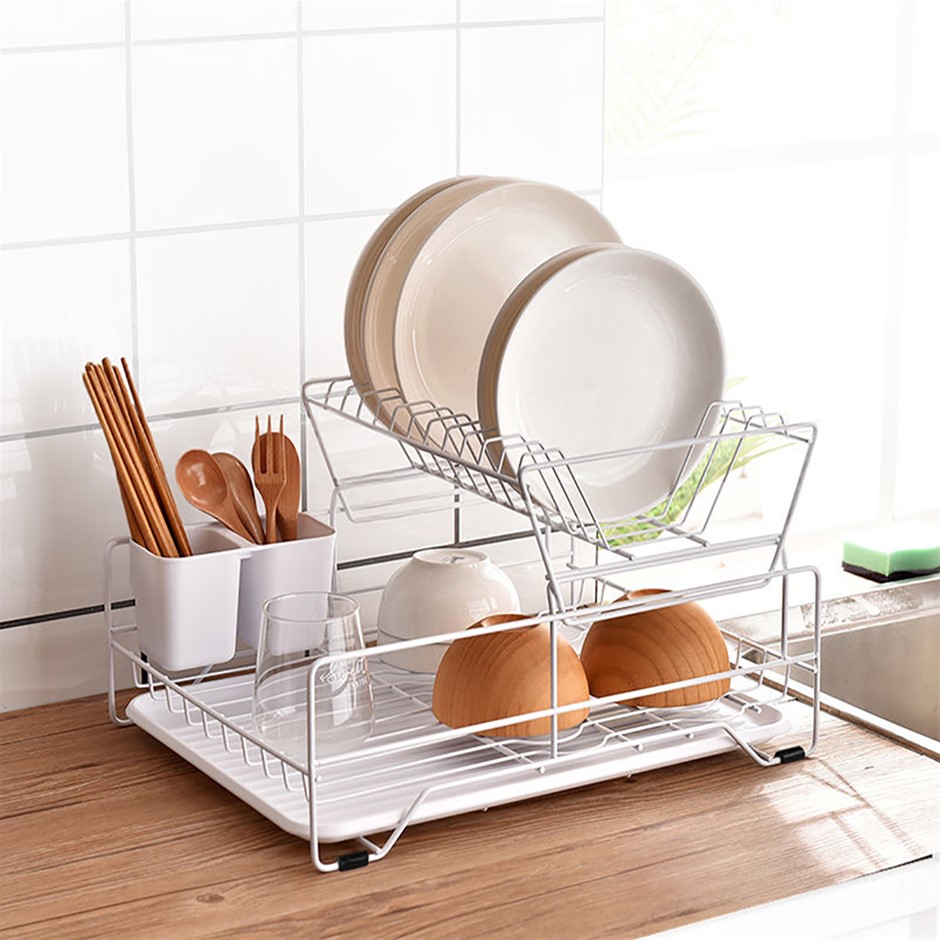 Kitchen 2-Tier Dish Drainer Storage Rack Plate Bowl Sink Tool Holder Dry Stand
