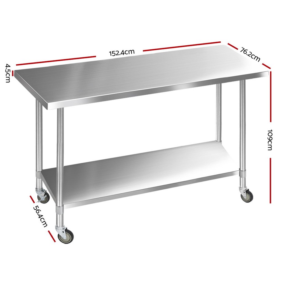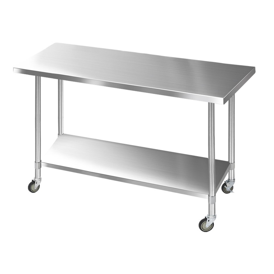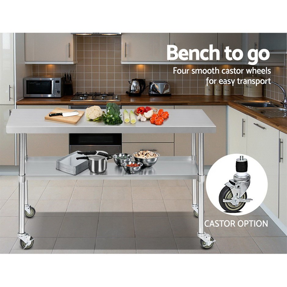Cefito 1524x760mm Commercial Stainless Steel Bench Prep Table w/ wheels