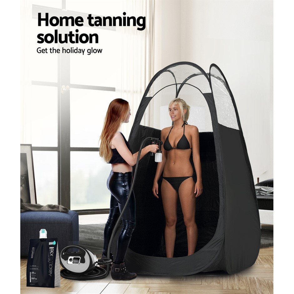 Have a tan without the burn, right in the comfort of your home. Our Home Spray Tan Kit is just the thing you need to have a good-looking tan all year long. Comprising spray machine, tent and solution, this complete kit makes it easy for you to do a no-hassles tan with professional results. The HVLP spray gun features an easy-to-clean detachable sprayer with three adjustable spray patterns. You can also control the flow with three speeds to choose from. Every spray comes with a warm air flow to hasten drying time and the built-in heater ensures you can do tans in winter with no cold worries. The quiet and powerful motor and improved spray gun emits a superfine mist that creates even and streak-free coverage for the perfect bronze finish. Using the self-erecting tent is a breeze by just letting the tent to pop up on its own once it’s out of the carry bag. Despite its simple structure, the tent is very sturdy and can be easily cleaned. We only use MineTan professional spray tan solutions because they deliver longlasting results and are friendly to skin too. Integrated with Quad Bronzing Technology, the solutions comprise powerful anti-oxidants, rich luxe oils, botanical fruits extracts and silky amino acids to help the tan develop faster and absorb deeper into skin. The combination of natural ingredients and botanical nutrients offer multiple benefits for the skin including vitamins and anti-oxidants to boost skin glow. Naturally-looking tan without the natural hazards of UV rays. It can only be with our Home Spray Tan Kit. Orders your today. Features: Improved model with reliable fine mist spray pattern Premium quality motor – much better than the old 700W system HVLP spray gun with easy to clean detachable sprayer 3 adjustable spray patterns: round, vertical and horizontal Adjustable gun with flow controls knob Warm airflow to faster the drying time 3 speeds selection: low, medium, high Built-in heat function Washable foam filter prevents internal damage 4 rubber feet for stable operation BONUS spare cup Mine Tan premium 1L solution Eco-Cert DHA Quad Bronzing Technology Powerful anti-oxidants Holds and binds moisture within the skin Specifications: Spray Tan Machine Voltage: 220-240V Power: 700W Spray cup capacity: 200ml Noise level: 68dB Nozzle size: 1mm Hose length: 2.6m Colour: Black Tent colour: Black Spray tan tent Dimensions (standing): 100 x 100 x 190cm Colour: Black Mine Tan Premium Solution Brand: Minetan DHA: Eco-cert (15% DHA) Volume: 1 Litre Package Contents: Spray tan machine x1 Tanning tent x1 Spray tan solution x 1 User manual x1