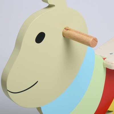 Your child will love riding this adorable wooden rocking caterpillar while developing their balance and co-ordination skills. Easy to grip handles and a smooth seat surface means kids can ride back and forth with ease. Using their imagination they can send themselves into other worlds, from pretending they are flying through the jungle to being a fairy on her pet. With a colourful caterpillar design, this rocking toy measures 73cm x 32cm x 51cm.