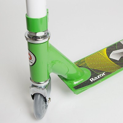 This fun sport scooter is designed for the advanced rider to pull off epic tricks. Its 100% aircraft grade aluminium construction, double stacked headtube clamp and fixed T-bar style handlebars with soft rubber grips offer superior quality performance and durability. The 98mm high-grade urethane wheels with RZR Pro 20 bearings, full deck anti-slip grip tape and rear fender brake ensure a smooth and safe ride. Not only is the scooter easy and exciting to use, but its cool and colourful look also brings style to the substance!
