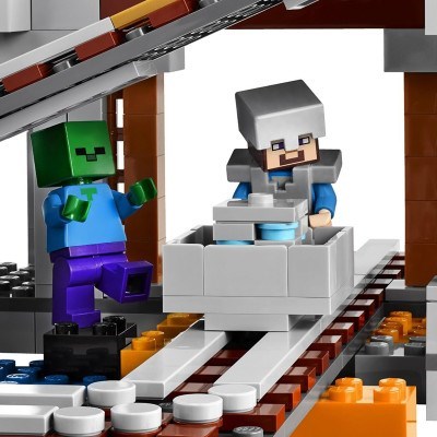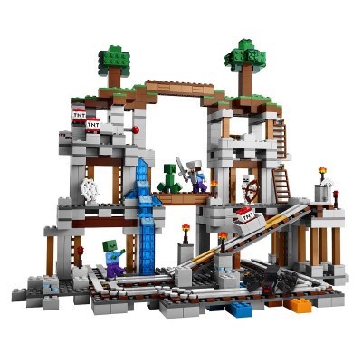 Enter The Mine at your own risk! You'll need to don your iron armour for this dangerous expedition. Grab your iron pickaxe and venture into the darkness, keeping an eye out for hostile mobs that lurk deep in the mine. Plant the TNT and activate the explosion function to blast away the rock face. Then load up the precious ores, jump aboard the minecart and hurtle past the Creeper™, zombie and skeleton, using the iron sword to keep them at bay until you're safely above ground. All in a days work fora LEGO® Minecraft™ hero! Rebuild the set for more LEGO Minecraft creations. Includes a Steve minifigure with weapons and accessories, plus a skeleton, zombie, spider and a Creeper™.
