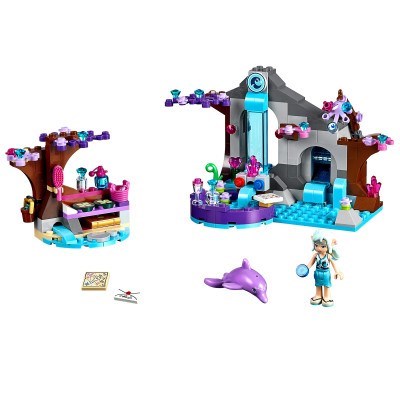 Search for the magical map with Naida Riverheart, the Water Elf, at her dreamy day spa. The map will guide the Elves to the 4 special keys they need to help their friend Emily Jones return to the human world. But only the wise dolphin Delphia knows where the map is hidden - when will she reveal the secret of the spa? Naida has magical water powers and feels most at home when immersed in her luxurious spa bath playing with Delphia. Find Naida's golden diary, and sit her on the day bed as she writes down all her thoughts and feelings. Create new recipes for beauty lotions and help her mix them in the crystal jars, then take a shower behind the beautiful waterfall. 41072 LEGO® Elves Naida's Spa Secret includes Naida Riverheart mini-doll figure and Delphia the dolphin.
